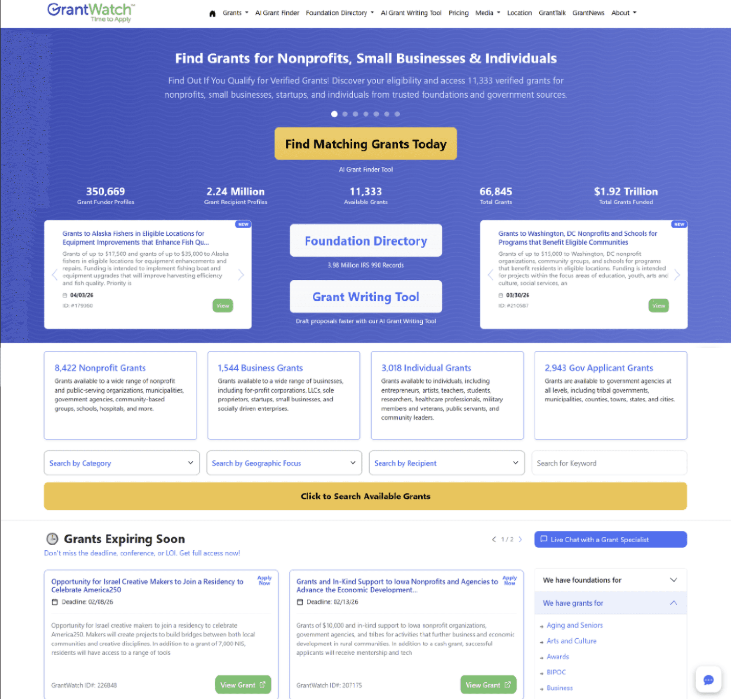 GrantWatch’s User Interface