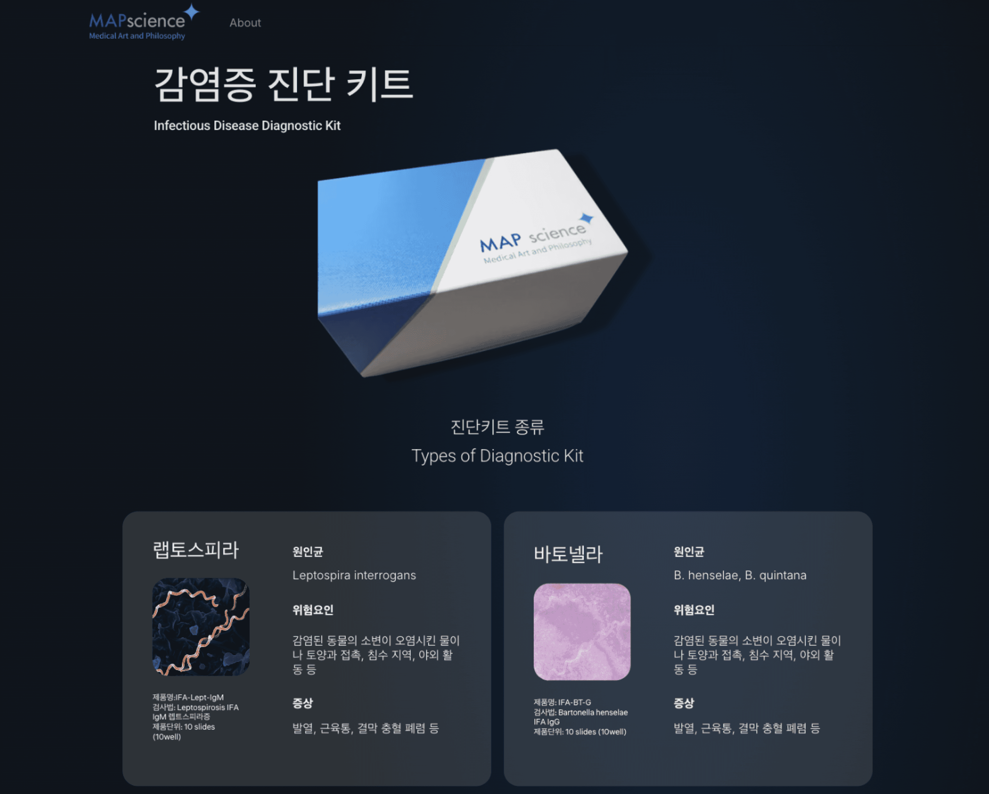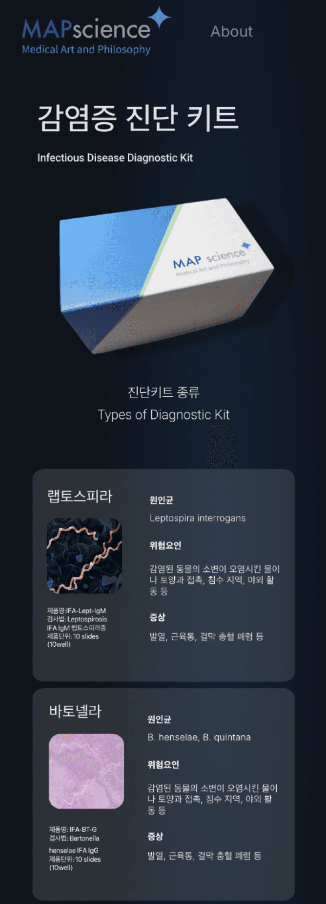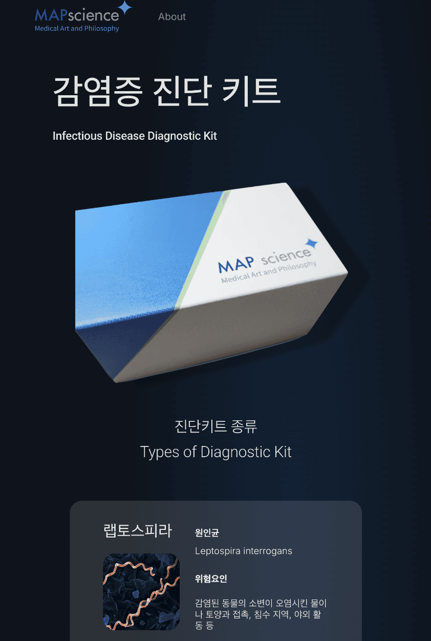 Map Science, a Korean biomedical diagnostics company, needed a redesigned website to reflect their expanded product lineup and discard their product (micro-organism detecting service).